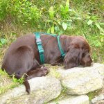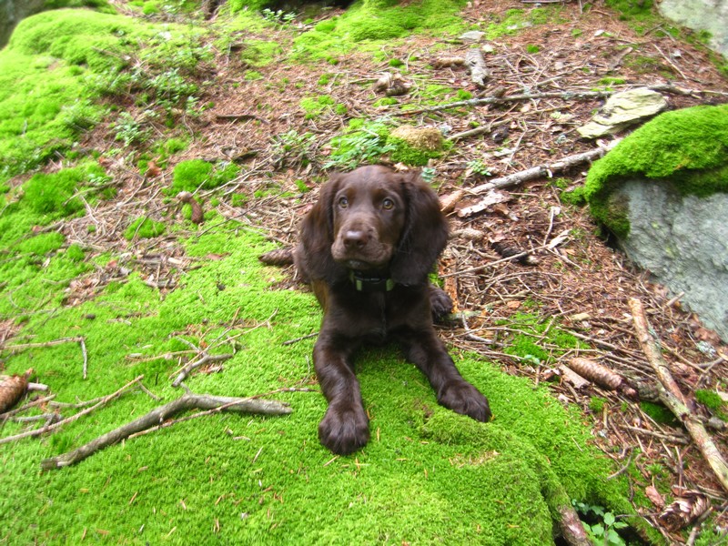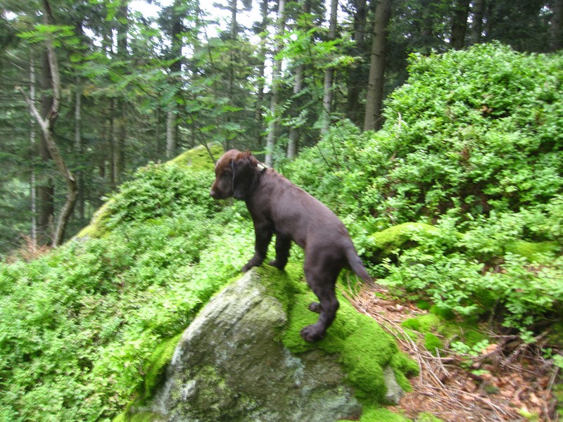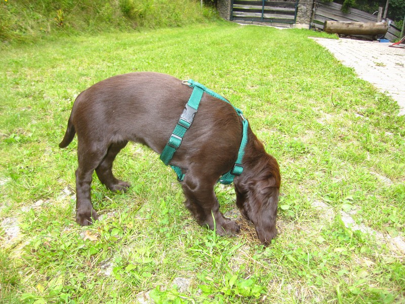 Da vom Schweiss legen für Yaska noch was übrig war, habe ich auch für Zeder eine dicke Schweissfährte gespritzt, direkt im Wald hinterm Haus. Mal sehen wie sie sich dabei anstellt.