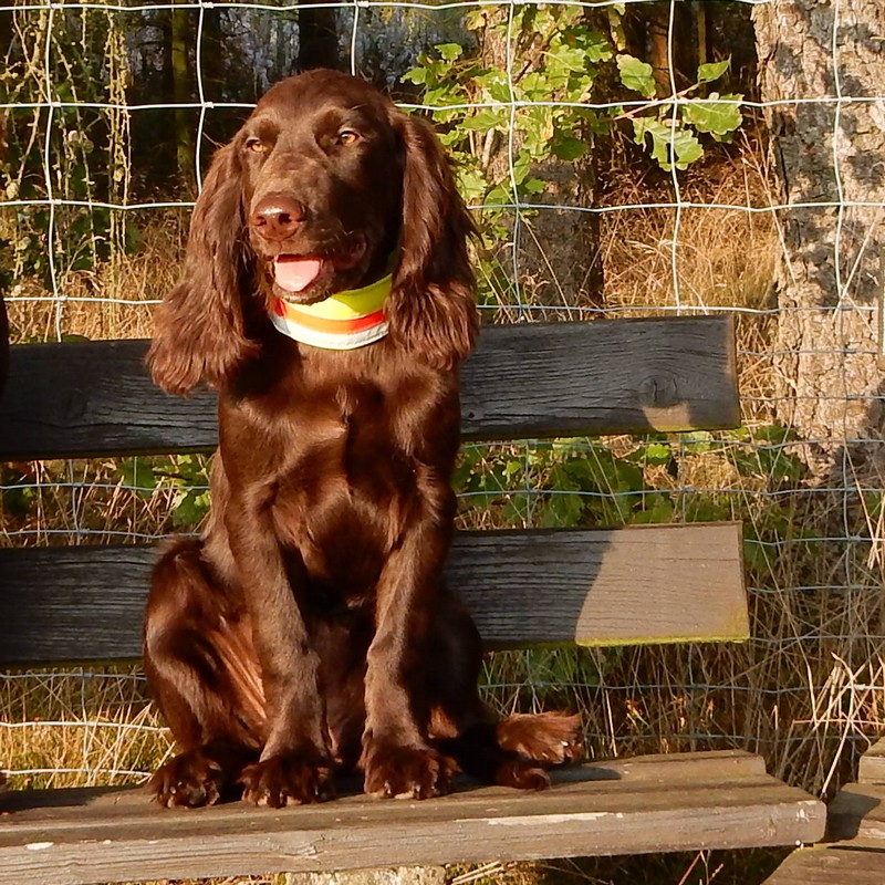 Die Wirkung hat allerdings nicht lange angehalten. Wir sind auf die andere Talseite gefahren und kamen am Waldrand an der Schafherde vorbei, die gerade umgetrieben wurde. Nachdem wir ein Stück weiter die Kirrung kontrolliert hatten, lief sie am Auto vorbei, den Berg runter Richtung Schafherde, der Geruch muss unwiederstehlich gewirkt haben. Ich ins Auto und hinterher und sehe sie auf dem Teerweg ca 50 m weiter links stehen und sie schaut den Schafen nach. Ich biege aber nach rechts ab und denke sie kommt hinterher. Sie wollte hinterherkommen, kriegt das aber wegen der Kuppe irgendwie nicht richtig mit (Auto ist plötzlich weg) und biegt in den Wald ein den Berg hoch. Da hat sie dann mit hängender Zunge gewartet, wo vorher das Auto stand, bis sie abgeholt wurde. Am liebsten wäre sie schon alleine reingesprungen, aber das schafft sie noch nicht.