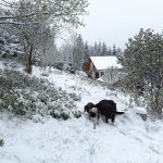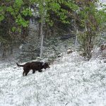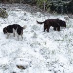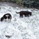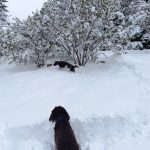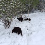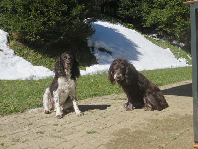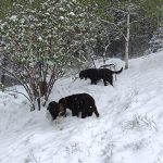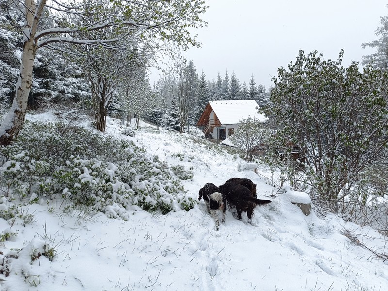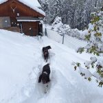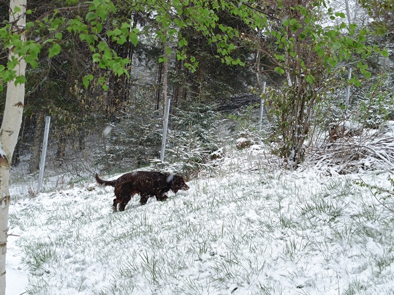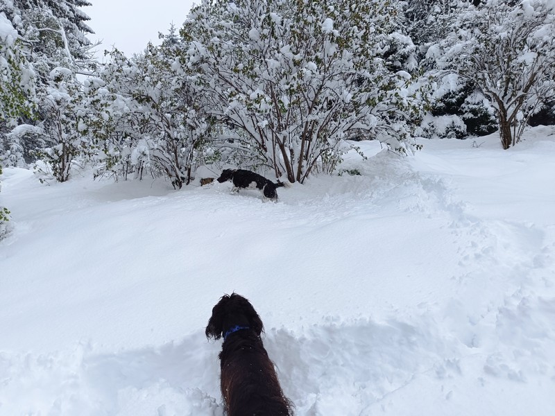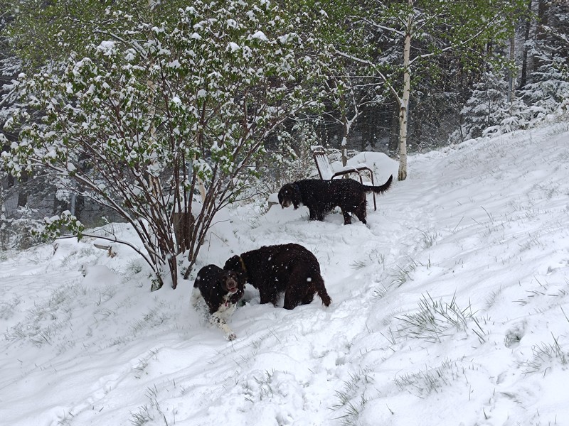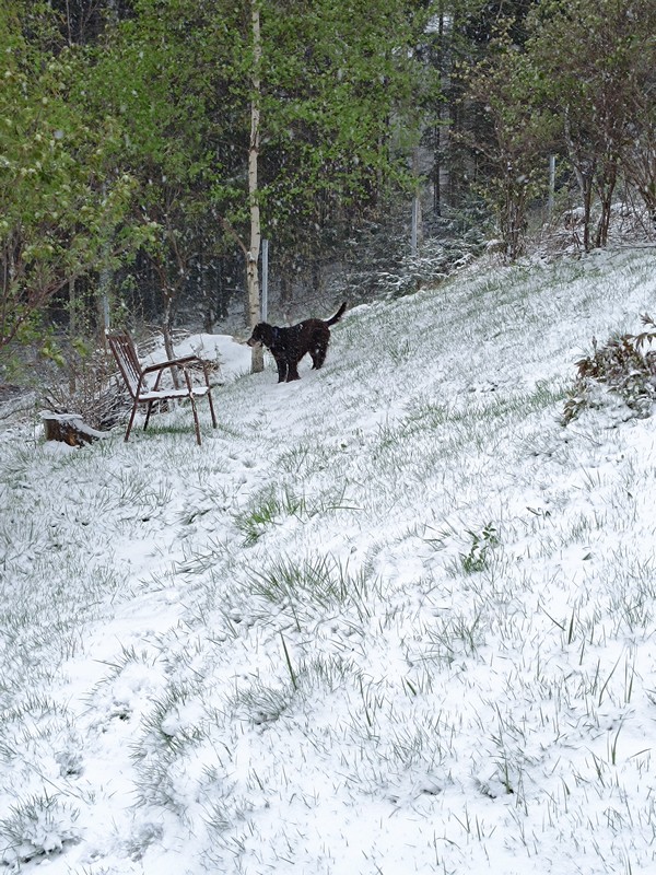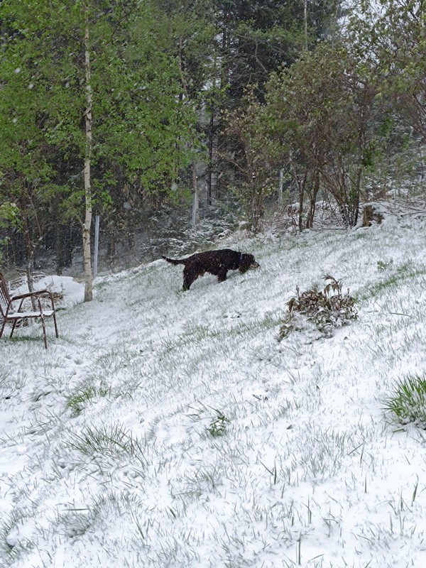 Heute morgen um sechs Uhr wurden die Hunde wie üblich wach und wollten raus. Dann standen wirklich alle drei unterm Vordach „was ist das für ein weisses Zeug? da wollen wir nicht rein!“
