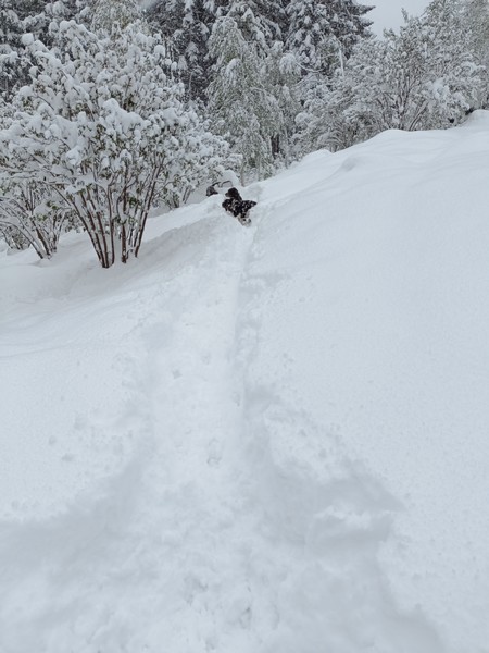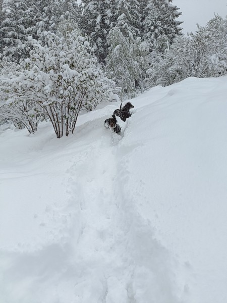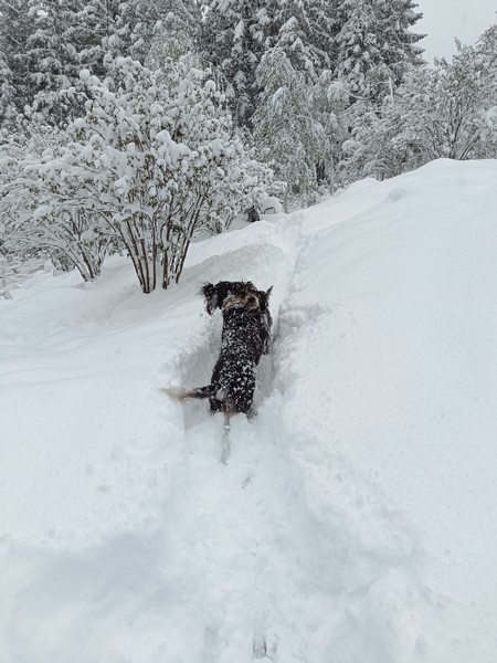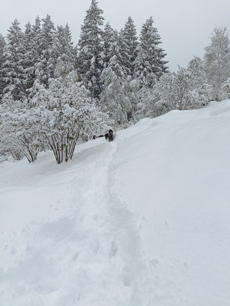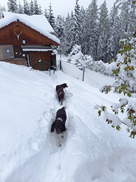 Ich musste mich mit Stiefel und Anorak ausrüsten, dann haben wir es gemeinsam versucht. Da war fast kein durchkommen, der Schnee „wachteltief“ also zwischen 40 und 50 cm Neuschnee über Nacht.