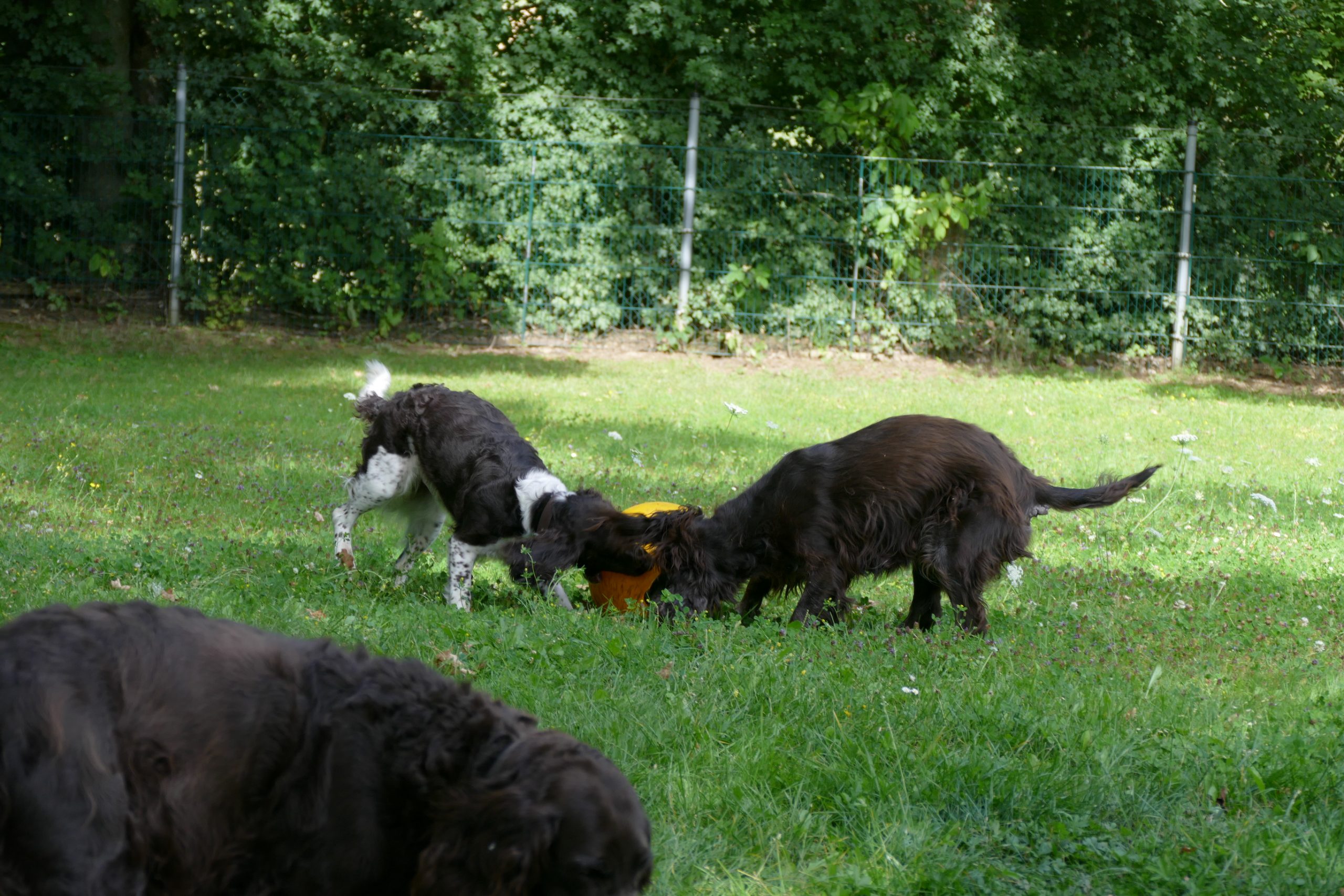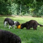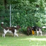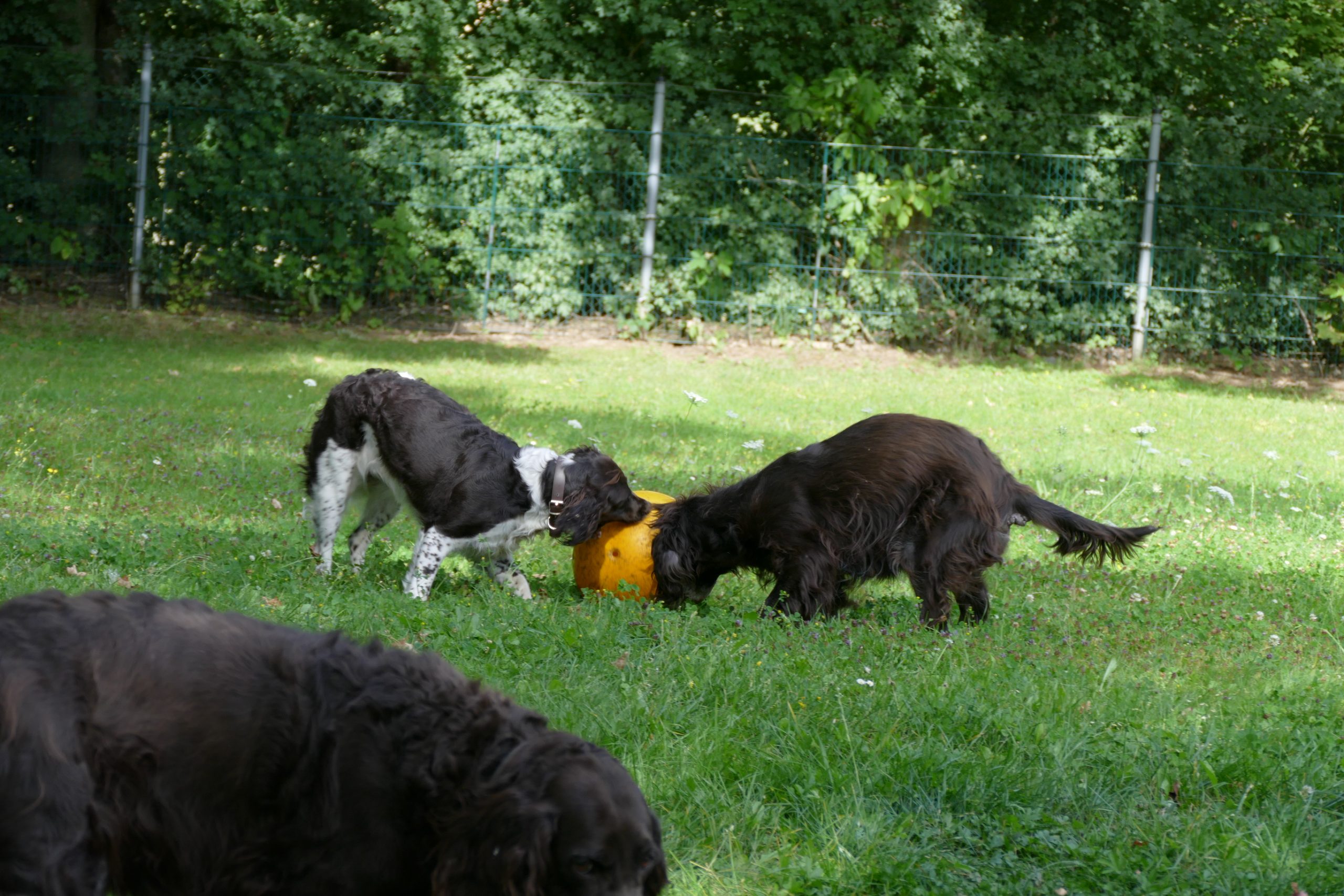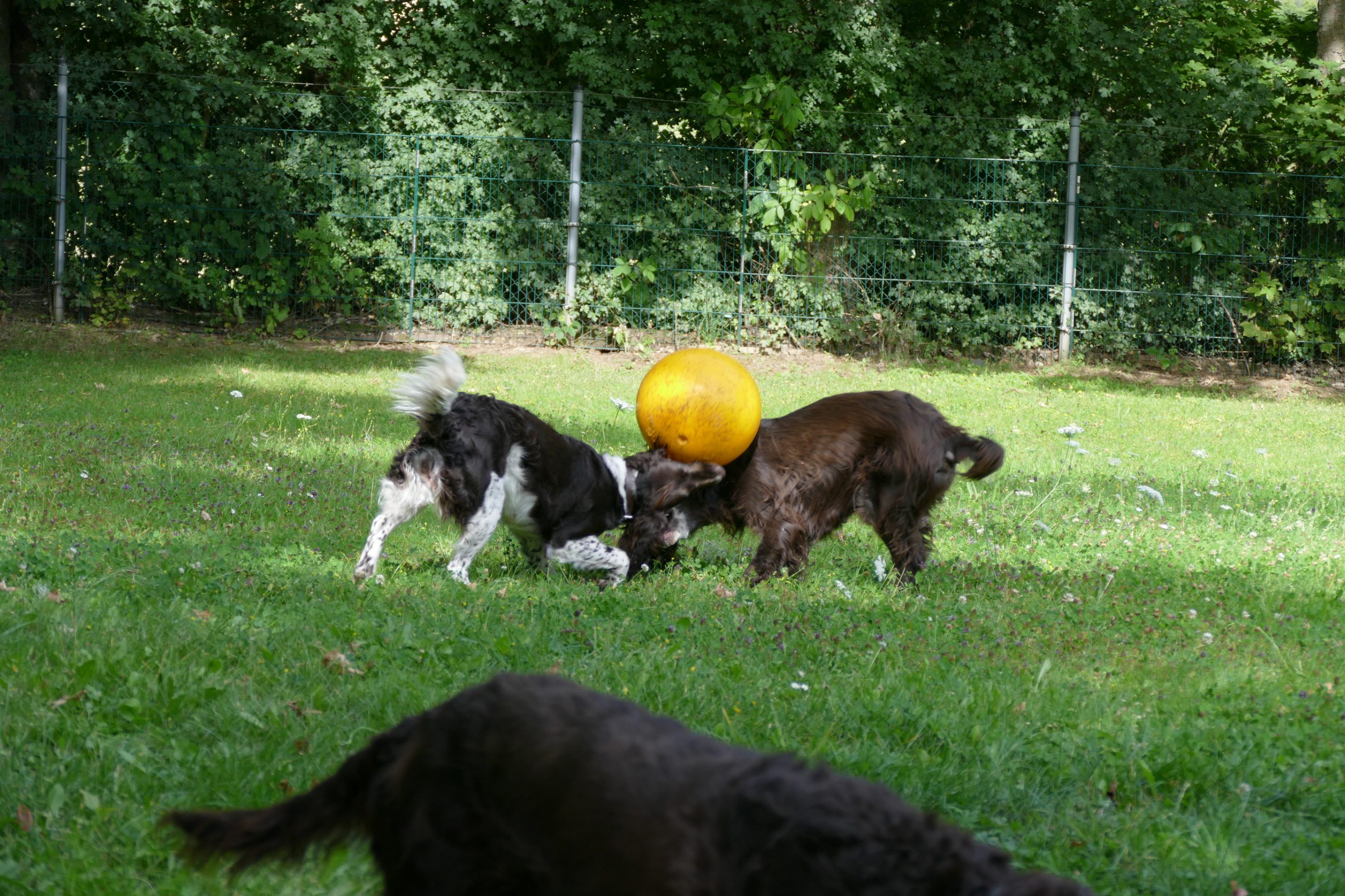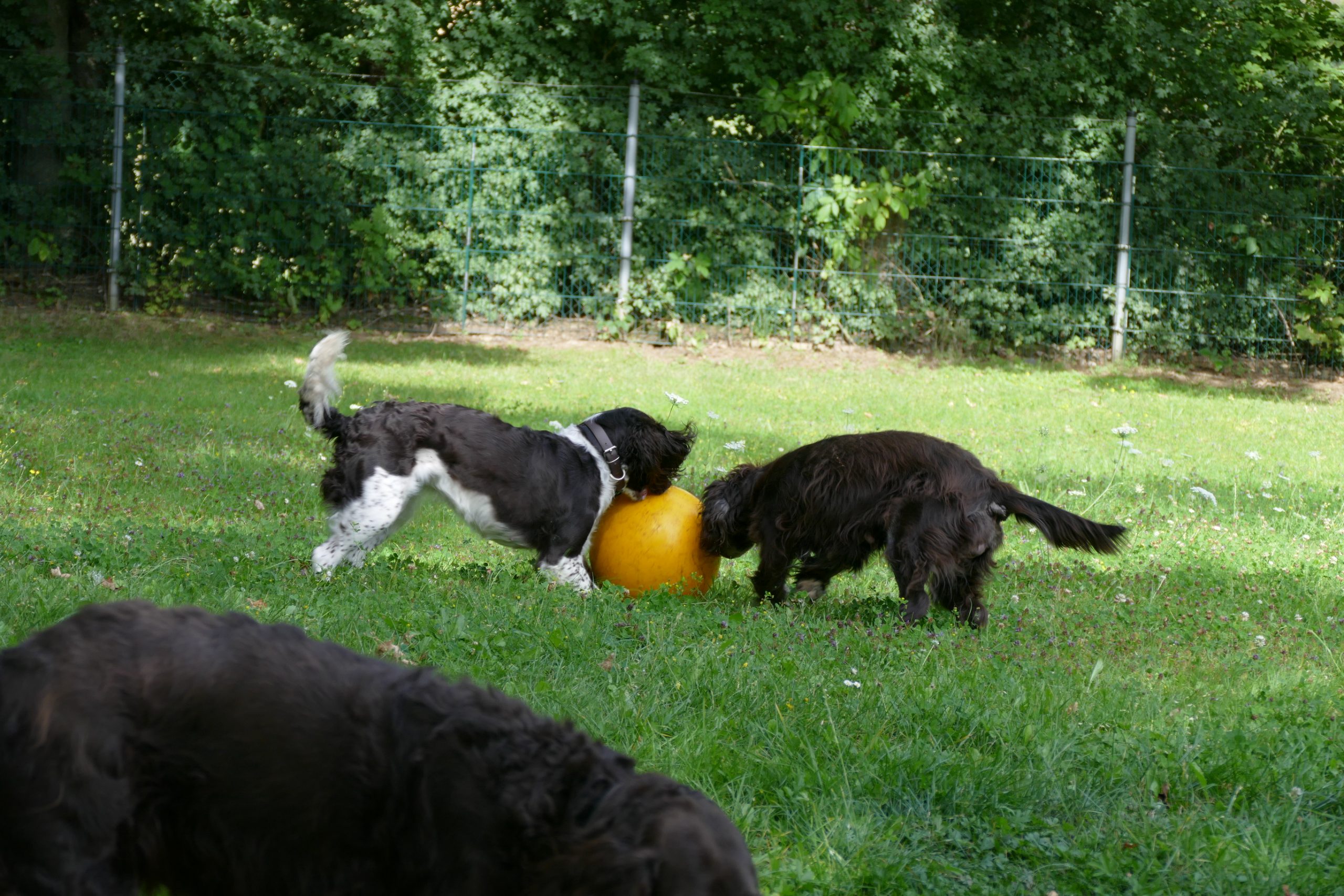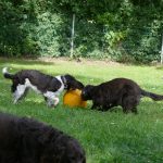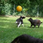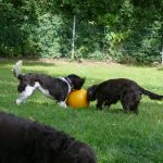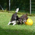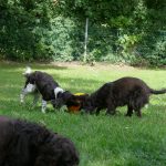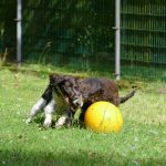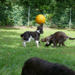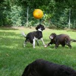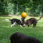 Später gab es noch eine Runde Treibball. Yaska hält sich da zurück und auch der Bub hat nur wenig mitgespielt, aber Ayka und Zeder waren voll in ihrem Element – was besonders bei Zeder nicht zu überhören ist.