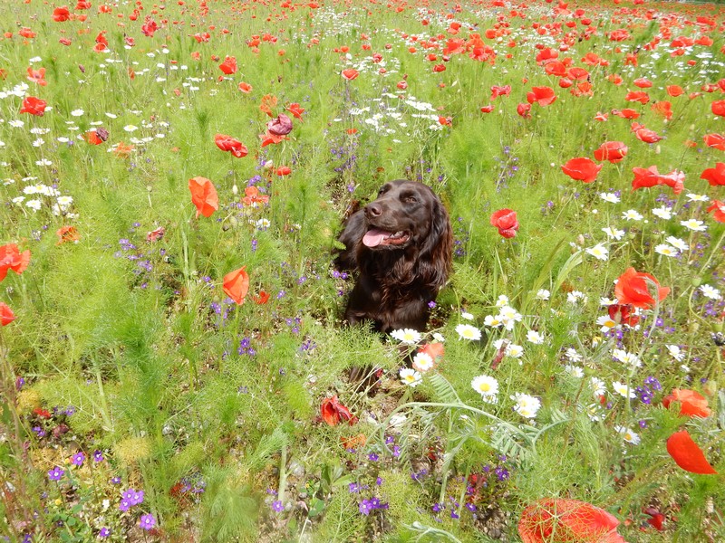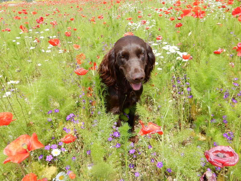 Wieder über den Steilhang, da muss ich jetzt runter, ganz schön glitschig in der Tongrube. Als ich fast unten bin, sehe ich sie da sitzen. Dämliche Töle, jetzt kommt sie endlich zu mir und wir sind schnell wieder oben.