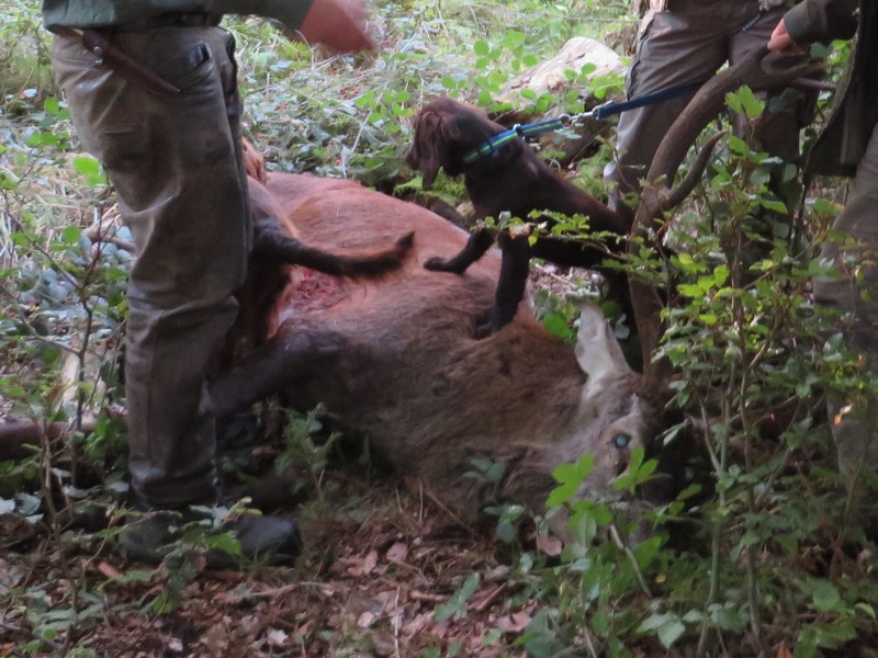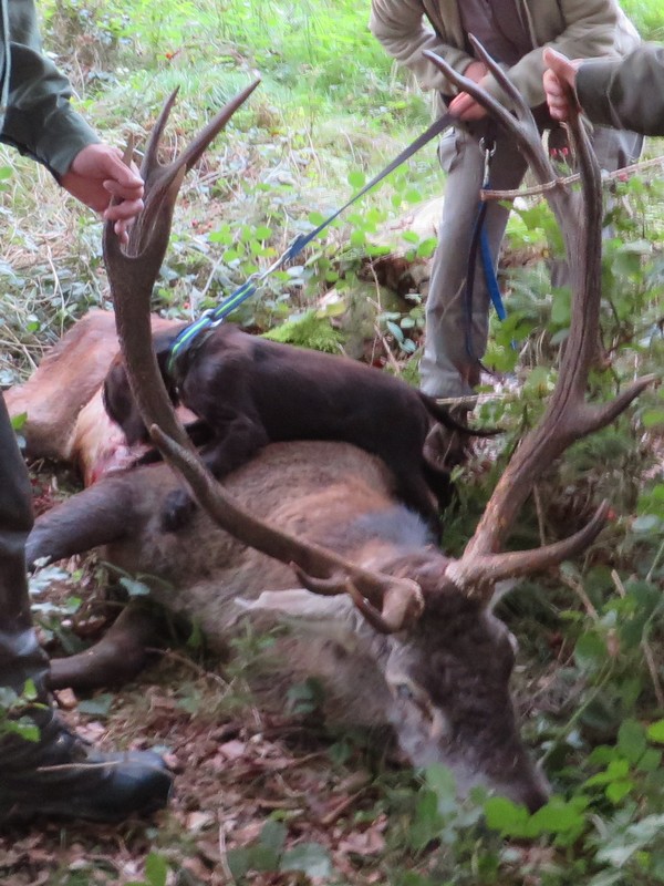 der etwas genervte Gesichtausdruck ist nicht wegen dem Hirsch, sondern wegen dem ungeliebten Befehl zum Sitzenbleiben 😉