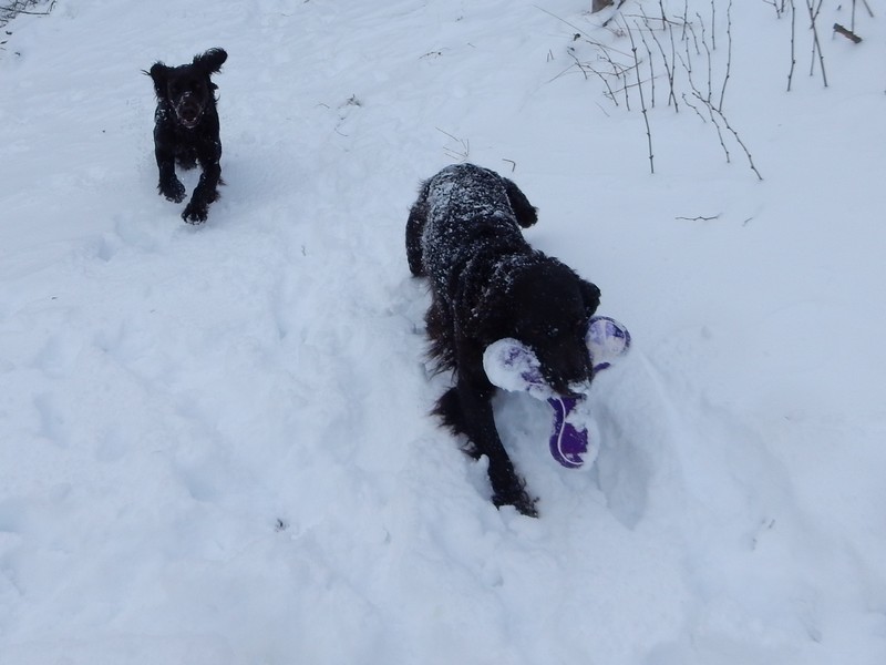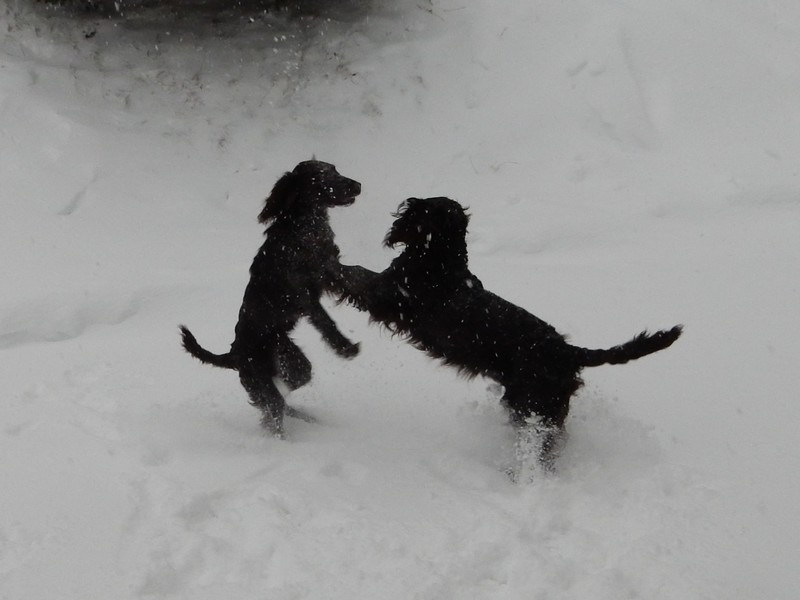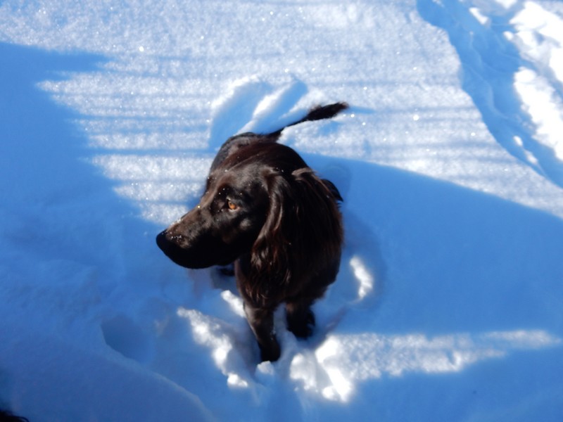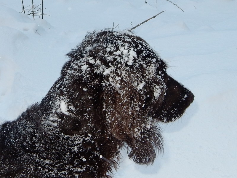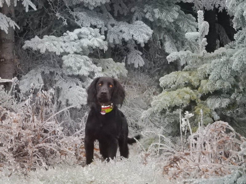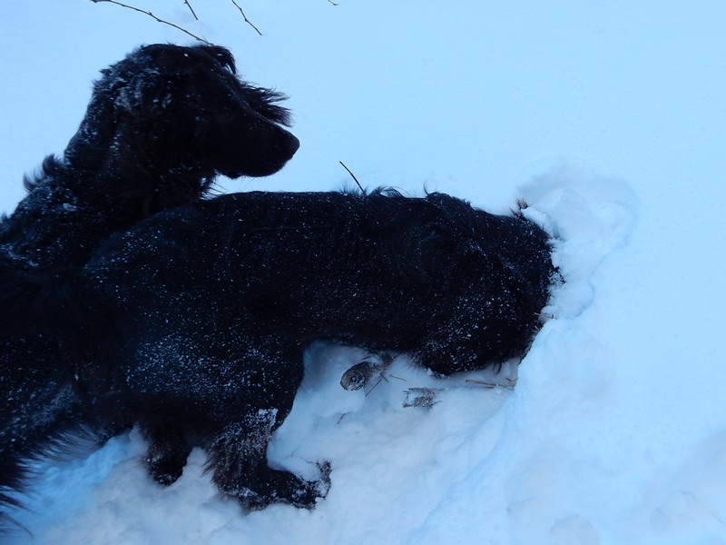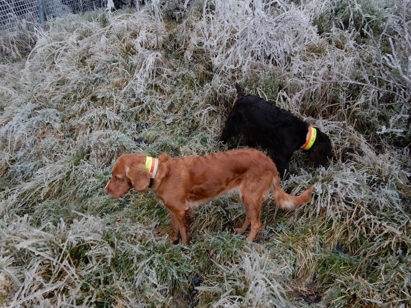 Am Hubertustag bin ich mitgefahren. Ich musste zwar im Auto warten, aber das Fenster war auf und ich hab genau gehört, wie Mama die Wildschweine durcheinander gejagt hat und wie es lustig geknallt hat. Als sie wiederkam durfte ich an ein paar Frischlingen schnuppern und hab die mal richtig angebellt.