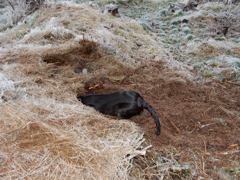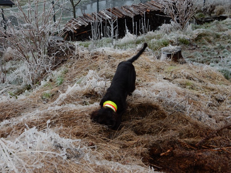 Gestern im Wald war ich mit der Wildcam beschäftigt, während sich das Wachtelchen neugierig und mutig in die Brombeerhölle vorgewagt hat, wo die Sauen unzählige Gänge angelegt haben. Plötzlich erscholl ein gar schröckliches Gebell, als ob ihr der Leibhaftige begegnet wäre. Es waren auch tatsächlich keine Sauen, sondern was riesengrosses gehörntes trollte sich von dannen. Als sie wieder raus kann, wollte sie ganz schnell zum Auto.