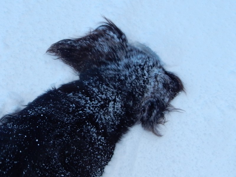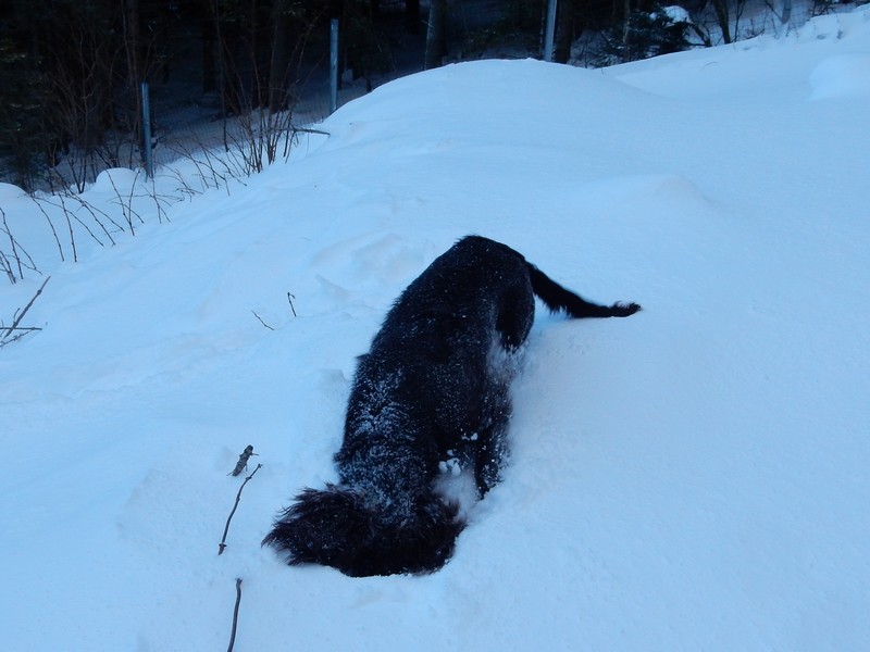 Oft ist es ja langweilig, immer so lange im Auto zu sitzen, aber manchmal darf ich auch mit in den Wald und das rote Zeug von den Blättern lecken, das riecht überall sooo interessant, und dann erst das grosse Tier was da liegt – Angst hab ich keine davor.